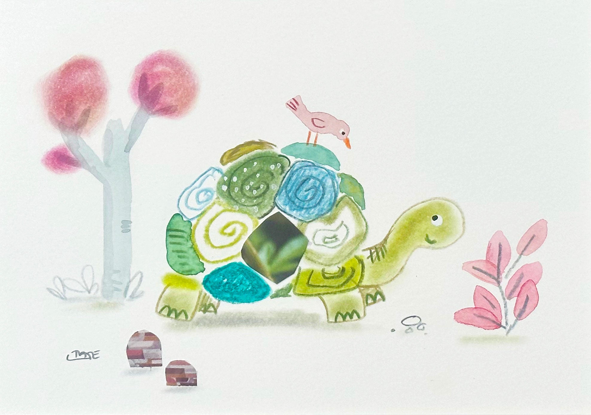 Original acrylic painting with pastel, coloured pencil and collage detailing.